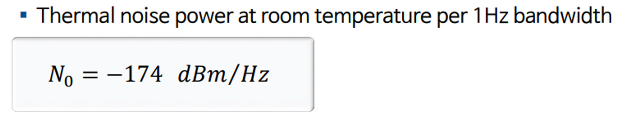 열 잡음은 실험적, 이론적으로 모든 BW 영역에서 1Hz당 -174dBm의 power를 가지고 있다.