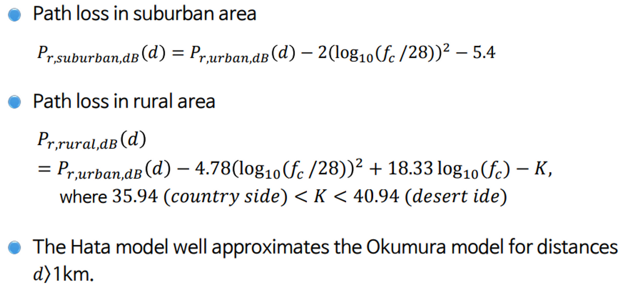 - Cost 231 Entension to Hata model (Hata model을 확장한 것)