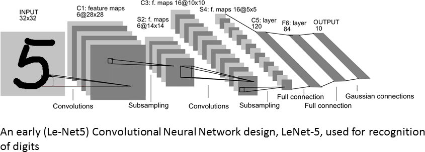 1998년 프랑스의 컴퓨터 과학자 얀 르쿤은 네오코그니트론에 역전파 알고리즘을 학습 알고리즘으로 채택한 CNN을 제안하였다. (역전파 알고리즘 또한 얀 르쿤이 1985년에 제안한 알고리즘이다.) 얀 르쿤은 최초의 CNN 모델로 LeNet-5를 제안하였고, 이는 convolution layer, pooling layer로 구성되었다.