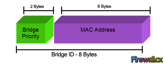 Bridge ID는 위처럼 총 8 Bytes 길이이며 맨 앞 16bits는 Bridge Priority, 뒤 48bits는 MAC address로 구성된다.