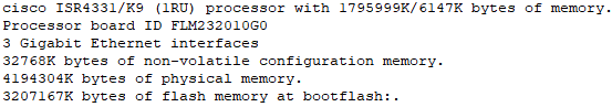 많은 정보들이 있지만 그 중 눈여겨 보아야 할 것은 바로 이것. 이 정보를 통해 해당 라우터가 3개의 Gigabit Ethernet interface를 장착하고 있음을 알 수 있고, NVRAM, RAM, Flash memory 크기도 알 수 있다.