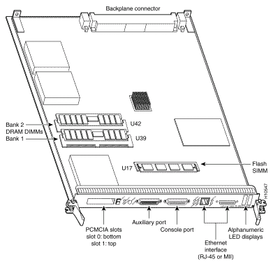 2, 3, 4 번째에 있는 DB-15, DB-60은 각각 Ethernet Interface, Serial Interface를 나타낸다. RJ-45는 각각 콘솔 포트와 Auxiliary 포트를 나타낸다. 포트 이외에 라우터에는 RAM, NVRAM, Flash Memory, ROM이 장착되어 있다.