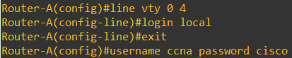 이때 그냥 login이 아닌 login local을 적용할 수도 있다. login은 미리 세팅된 password만을 묻는 것인데, login local은 세팅된 사용자 ID, password를 전부 묻는다. 따라서 password 하나만을 묻는 login 명령보다 더 강한 보안을 보장한다.