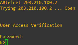 Router B에 telnet password를 설정해주었다. 이제 다시 A에서 B로 telnet 연결을 시도해보자.