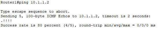 Router 1에서 Router 2 (10.1.1.2) 방향으로 ping을 쏴서 테스트를 수행해보았다. 아주 잘 작동한다.