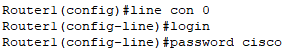 해당 port들에 접근한 후 (config-line), login입력 - password cisco로 설정하면 5개 포트에 전부 password가 설정된다.