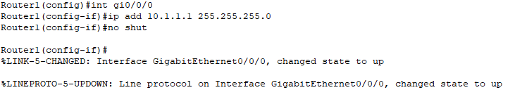 IP 주소 할당과정은 ip address [ip주소] [subnet mask]로 이루어진다. 위 네트워크 그림을 보면 Router 1에 대하여 IP를 10.1.1.1/24로 설정하도록 되어있다. 여기서 슬래쉬 뒤의 24는 Subnet mask의 1개수이다! 따라서 255.255.255.0을 subnet ask로 설정해 준 것이다.