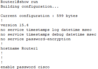enable password [사용할 비번]의 단점이 여기서 등장하는데, privileged mode에서 show run을 입력하면 비번이 다 뜬다. 그래도 뭐 user mode에서는 show run 명령어 자체가 입력이 불가능하므로 user가 해당 password를 볼 수 없긴 하다. 하지만 privileged mode에 한 번 진입했다면 누구나 password를 볼 수 있다는 단점이 있으므로 enable secret을 사용하도록 하자.